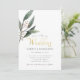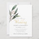 Watercolor green eucalypt leaf with gum nuts and gold typography wedding invitation. An elegant and simple wedding invitation. Personalize with your own wedding event details.