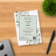 These beautiful acrylic wedding invitations feature a modern design with sprigs of hand painted watercolor eucalyptus leaves and garden greenery. The text includes modern script lettering on a sage green background with a customizable QR code for RSVP and information. Simple, stylish, elegant, and chic, these invitations are a wonderful way to invite your friends and family to share in your joy on your special day!