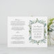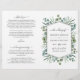 Élégant programme de fêtes d'eucalyptus mariage de style organique moderne, combinant un cadre hexagone géométrique avec feuillage vert botanique et belle typographie. L'aquarelle verte comprend des branches d'eucalyptus, d'eucalyptus feuille et d'argent, dans des tons doux et verdoyants de menthe, de vert, d'olive et de bleu muet. Parfait pour un mariage de printemps ou d'été. Personnalisez les deux côtés de la feuille avec votre cérémonie personnalisée, la fête de mariage, et merci le libellé du message. Notez que ceux-ci arrivent à plat et nécessitent un pli central.