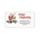 This stylish unforgettable return address label features a classic red and green colour scheme combined amazing illustration at Santa with his reindeer and festive script typography that says "Merry Christmas" on a white background.