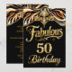 Elegant Fabulous 50 Birthday Black Gold Zebra Bow Invitation