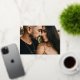 Une carte élégante de faire-part de date de mariage avec une photo en paysage pleine page avec une calligraphie manuscrite en or et un texte chic et simple à éditer sur le devant. Le verso comporte un site web de mariage. Cliquez sur le bouton d'édition pour personnaliser ce design.