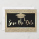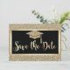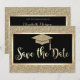 Élégant chapeau de diplômé à paillettes dorées sur fond noir.