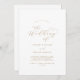 Cette élégante faire-part de mariage en or à l'avant et à l'arrière est parfaite pour un mariage simple. Le design minimaliste or et blanc présente une typographie romantique avec style glamour moderne. Personnalisable dans n'importe quelle couleur. Gardez le design minimal et élégant, tel quel, ou personnalisez-le en ajoutant vos propres graphiques et artwork.