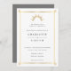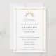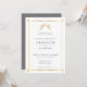 Faire-part de mariage élégant et simple avec un cadre art déco en faux or et un soleil art déco stylistique. Arrière - plan blanc avec un dos gris.