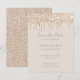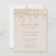 Invitation élégante et plate en forme de carte Faire-part de mariage avec faux paillettes de champagne qui goutte sur le devant et paillettes de champagne supplémentaires au dos. Le texte est entièrement personnalisable, y compris la couleur, la taille et le style. Cette invitation #SavetheDate est livrée avec une enveloppe blanche. Pour un coût supplémentaire, une enveloppe assortie avec des paillettes à l'intérieur peut être commandée ici : https://www.zazzle.com/z/a3k4w3ws?rf=238504902174953975. De 369Design.