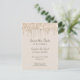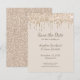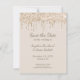 Faire carte plate d'invitation "Save the Date" pour mariage élégant avec fausse brillance de couleur champagne qui dégouline sur le devant et fausse brillance de champagne supplémentaire au dos. Cette invitation "Save the Date" pour mariage est livrée avec une enveloppe blanche. Pour un coût supplémentaire, une enveloppe assortie avec fausse brillance à l'intérieur peut être commandée ici : https://www.zazzle.com/z/a3k4w3ws?rf=238504902174953975. Le texte entièrement personnalisable vous permet de rendre cette invitation "Save the Date" unique pour votre mariage ou autre occasion spéciale, comme une fête d'anniversaire, une fête d'anniversaire ou une fête de quinceañera. De 369Design.