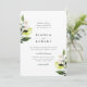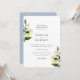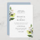 Élégantes branches de citron botanique et arrangements floraux, faire-part de mariage. modèle de style design de typographie moderne et simple. Le dos de la carte est composé d'une couleur bleue claire et aérée.