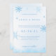 Donnez le ton de votre mariage d'hiver magique avec cette élégante invitation de flocon de neige en bleu glace doux. Doté de flocons de neige glacés et d'une typographie serif classique, ce design est parfait pour les mariages de chalets de montagne ou les célébrations hivernales du pays des merveilles. Facilement modifiable avec vos détails.