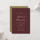 Un faire-part de mariage intemporel avec un design de script minimaliste avec une typographie douce sur un arrière - plan riche. Parfait pour les couples à la recherche d'un look romantique mais sophistiqué pour leur journée spéciale. Idéal pour des thèmes de mariage classiques, modernes ou élégants.