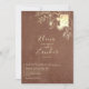 Faire-part de mariage en or rose simple, moderne et élégant en terre cuite avec dentelle fleurie en feuille d'or et monogramme chic - initiales à droite. Unique, élégant, d'inspiration nature, avec un glamour contemporain.