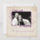 L'invitation présente une texture de papier parchemin avec des lignes violettes frileuses bordant un cadre autour de votre photo fiançailles avec un texte qui dit "avoir et tenir" d'un côté avec vos détails mariages de l'autre avec une bordure orange autour des bords de l'invitation.