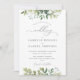 Cet élégant Faire-part de mariage verdoyant allie charme naturel et sophistication moderne. Doté de feuilles d'aquarelle luxuriante, d'une couronne botanique et d'une typographie intemporelle, il est le choix idéal pour les mariages de jardin, les fêtes rustiques ou les cérémonies d'inspiration nature. Le design comprend un avant et un arrière personnalisables, vous permettant de personnaliser facilement vos noms, date mariage et détails de l'événement. Un bel équilibre entre simplicité et élégance, cette invitation donne le ton d'une fête chic et romantique.