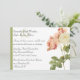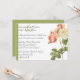 Jolie invitation personnalisée faite en blanc, avec une belle illustration vintage de roses rose pâle et ivoire, sur la droite, de l'invitation. Une bande verte pâle orne le côté gauche de l'invitation et sur le dos, le vert clair est solide. Le texte, en script noir, est entièrement personnalisable pour répondre à vos besoins mariages. Produits correspondants disponibles.
