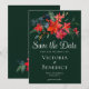 Cette invitation de Faire-Part de Noël pour les fêtes met en vedette une superbe aquarelle de fleurs de poinsettia rouges et de feuilles de pin pour Noël. Un faire-part de mariage d'hiver élégant en vert chasseur foncé. Une célébration festive de l'amour pour les fêtes. Personnalisez le dos de cette carte florale de poinsettia avec les initiales du monogramme du couple.