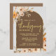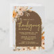 A invitation to a Thanksgiving dinner showcasing beautiful watercolor autumn flowers with gold foil accents. The words "Thanksgiving Dinner" is elegantly written in a modern handwritten typography, with event details displayed at the centre within an arch design.
