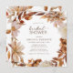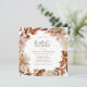 These elegant square bridal shower invitations feature hand-painted watercolor burnt orange and terracotta leaves, cream and beige dahlias, and beautiful rust-coloured roses on a white background. Find matching items in the White Autumn Romance Collection.