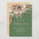 This Thanksgiving Dinner invitation features an elegant fall floral graphic in shades of golds and browns on a sage green background.
