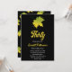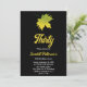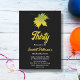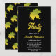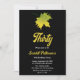 This elegant fall birthday invitation is perfect for a modern autumn birthday. The simple design features green fall leaves with elegant white and yellow typography on a black background.