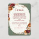 Elegant fall orange sage floral wedding details Enclosure Card. Enhance your wedding suite with this elegant fall details enclosure card, adorned with warm orange and sage floral accents. Designed to complement an autumn-inspired wedding, this card is perfect for sharing important details such as accommodations, directions, or special events. With its sophisticated design and rich seasonal hues, it adds a timeless and stylish touch to your wedding stationery.