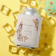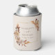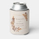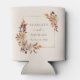 Elegant Fall Wedding Can Cooler. This elegant and modern wedding can cooler features hand-painted watercolor burnt orange and terracotta leaves, cream and beige dahlias, and beautiful rust-coloured roses on a taupe | beige background with the bride and groom's names and wedding date on both sides. Find matching items in the Taupe Autumn Romance Collection.