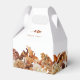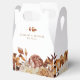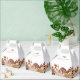 This elegant fall wedding favour box features hand-painted watercolor burnt orange and terracotta leaves, cream and beige dahlias, and beautiful rust-coloured roses on a white background with the bride and groom's name and wedding date in tan text. Find matching items in the White Autumn Romance Collection.