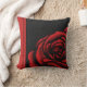 Elegant Faux Black Red Leather Rose Throw Pillow