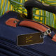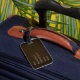 This conservative luggage tag has an antique gold monogram on a dark burnished background. A visual effect makes the monogram appear to be embossed and slightly 3-dimensional.
