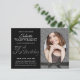 A very pretty, bold black, white and grey "silver" glitter coloured design that works well with black and white or full colour photograph of the lovely lady (or gentleman) celebrating a milestone fiftieth birthday. Invite family and friends to a special celebration. The design features classy faux glitter effect oval shaped photo frame area that appears to be wrapped in a pretty ribbon. and fancy script handwriting text with flourishes and curls. Adjust your photo image sizes and cropping to suit. Sample image is for illustration purposes only - replace with your own photograph. Note that all embellishments and glitter areas are digital illusion only, this is a flat printed product and there are no real ribbons, metallic inks or sparkles or other materials on this invitation.