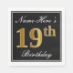 Elegant, Faux Gold 19th Birthday + Custom Name Napkin
