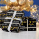 This simple and elegant wrapping paper design features a personalized message like "NameHere’s 22nd Birthday" (with the "22nd" having a faux/imitation gold-like colouring look) within a black-coloured square area featuring a simple border outline. The name is in an elegant white-coloured script-like text, and can be personalized. Wrapping paper like this could perhaps be used when wrapping birthday gifts for somebody who is celebrating their twenty second birthday. [~Z0000217]