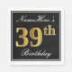 Elegant, Faux Gold 39th Birthday + Custom Name Napkin