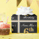 This simple and elegant wrapping paper design features a personalized message like "Name-Here’s 6th Birthday" (with the "6th" having a faux/imitation gold-like colouring look) within a black-coloured square area featuring a simple border outline. The name is in an elegant white-coloured script-like text, and can be customized. Wrapping paper like this could perhaps be used when wrapping birthday gifts for somebody who is celebrating their sixth birthday. [~Z0000217]