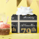 This simple and elegant wrapping paper design features a personalized message like "ANameHere’s 79th Birthday" (with the "79th" having a faux/imitation gold-like colouring look) within a black-coloured square area featuring a simple border outline. The name is in an elegant white-coloured script-like text, and can be customized. Wrapping paper like this could perhaps be used when wrapping birthday gifts for somebody who is celebrating their seventy ninth birthday. [~Z0000217]