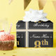 This simple and elegant wrapping paper design features a personalized message like "Name-Here’s 8th Birthday" (with the "8th" having a faux/imitation gold-like colouring look) within a black-coloured square area featuring a simple border outline. The name is in an elegant white-coloured script-like text, and can be customized. Wrapping paper like this could perhaps be used when wrapping birthday gifts for somebody who is celebrating their eighth birthday. [~Z0000217]