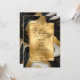 A wedding invitation featuring a faux gold, black and white marbled design.