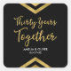 This elegant square sticker features a chic geometric chevron and the word "Thirty Years Together" in faux gold against a black background. It's great for a 30th wedding anniversary celebration. Check out matching invitations and items here http://www.zazzle.com/collections/modern_faux_gold_chevron_celebration_collection-119531050277382712?rf=238364477188679314