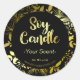 Elegant FAUX Gold Foil Branch Black Soy Wax Candle Classic Round Sticker
