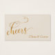 In a festive, elaborate script font, the words "let us buy you a drink" appear on the front of this stylish drink ticket. The beautiful text has been embellished with a faux gold foil effect. "Good for One Adult Beverage" was added to the editable text field in a complementary serif font at the bottom. Use any other words you like, if you want to change the copy. On the other side, the beautiful graphic text overlay reads "cheers" and a template place holder was added for your names. The editable background can be changed to any colour you prefer. All layers are unlocked so you can resize or re-position any part of this card that you like, if you want to tweak this design. Please do not hesitate to reach out if you have requests or need customizing assistance.