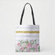 Elegant FAUX Gold Stripe With Pink Roses and Name Tote Bag