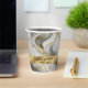 Wedding paper cups featuring an elegant faux gold, white, and grey marbled design.