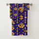 Elegant faux golden roses on royal blue bath towel set