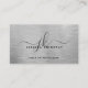 Modern, stylish professional business card with chic fancy script monogram initials and name in grey and black on faux brushed metallic silver. CHANGES: Change the text font style, colour, size and placement in EDIT. ASSISTANCE: For help with design modification or personalization, colour change, resizing, transferring the design to another product or you would like coordinating items, contact the designer BEFORE ORDERING via the Zazzle Chat MESSAGE tab or email makeitaboutyoustore@gmail.com.