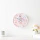 Elegant Faux Pink Marble Grey Name & Monogram Round Clock