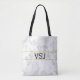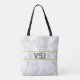 An elegant faux white marble texture pattern is on this tote bag. In the middle of the bag you can personalize it with your monogram in black text. A faux (not foil) gold line is above and below the initials.