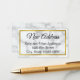 This faux white marble change of address insert can be personalized with your desired text. At the top, there's an elegant black script (shown: New Address). Then there are three lines of black display text for your name and address. The gold look border is not made of foil.