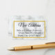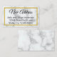 This faux white marble change of address insert can be personalized with your desired text. At the top, there's an elegant black script (shown: New Address). Then there are three lines of display text for your name and address. The text is black. The gold look border is not made of foil.