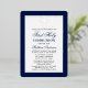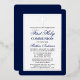 Elegant Navy Blue and Silver First Holy Communion Invitation with Cross. Silver Foil Frame. Silver Foil Cross. Rounded Edges.