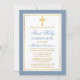 Modern Elegant Dusty Blue and Gold First Holy Communion Invitation with Cross.