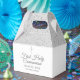 Elegant first holy communion favour box featuring silver stardust with your event details set in chic silver typography. You can personalize with your own thank you message on the reverse. A perfect way to say thank you to your guests! Designed by Thisisnotme©